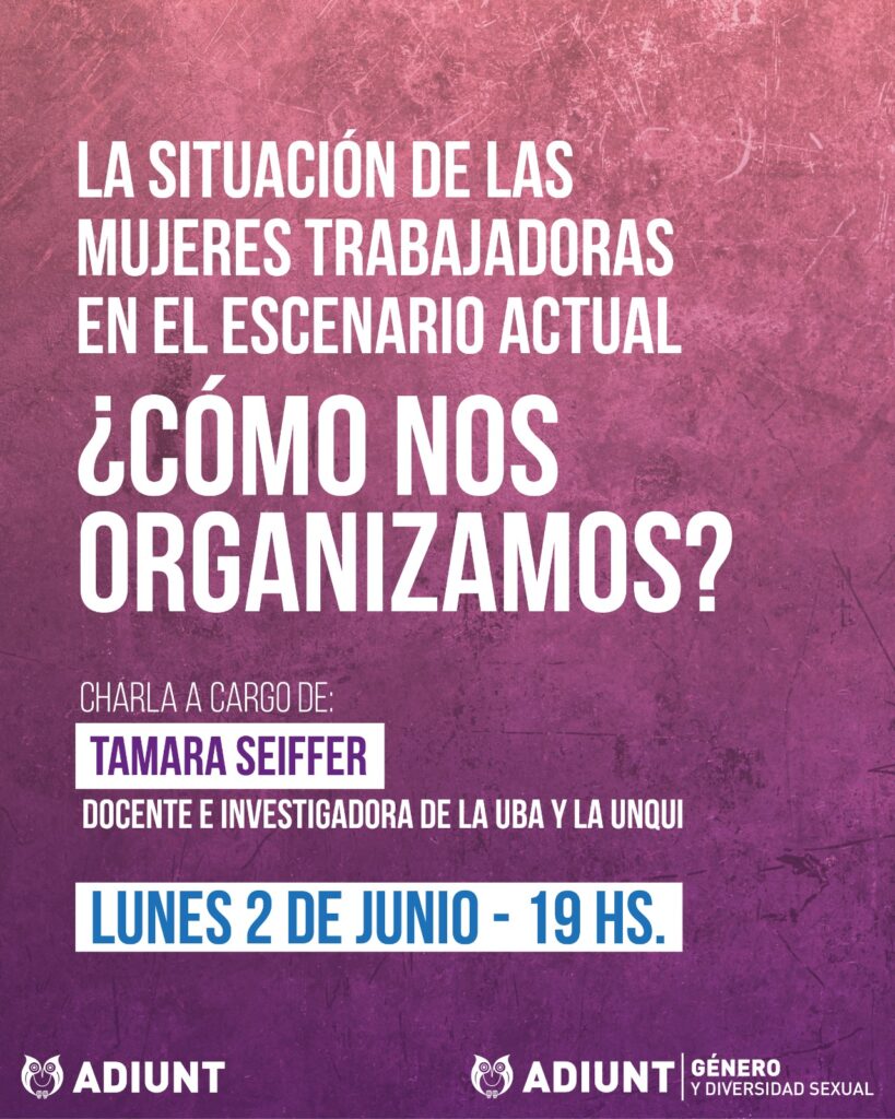 En el marco de una nueva jornada del #3J Ni Una Menos, la ADIUNT invita a participar de una charla-debate que se realizará el lunes 2 de junio a las 19 hs en la sede gremial (La Rioja 437).