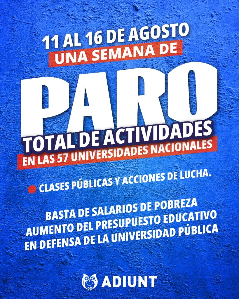 Del 11 al 16 de agosto, la docencia universitaria y preuniversitaria de todo el país llevará adelante un paro total de actividades en el marco del plan de lucha nacional resuelto por el Congreso Extraordinario de CONADU Histórica, en defensa del salario, el presupuesto y la universidad pública. La medida incluye clases públicas y acciones de visibilización en todo el país.