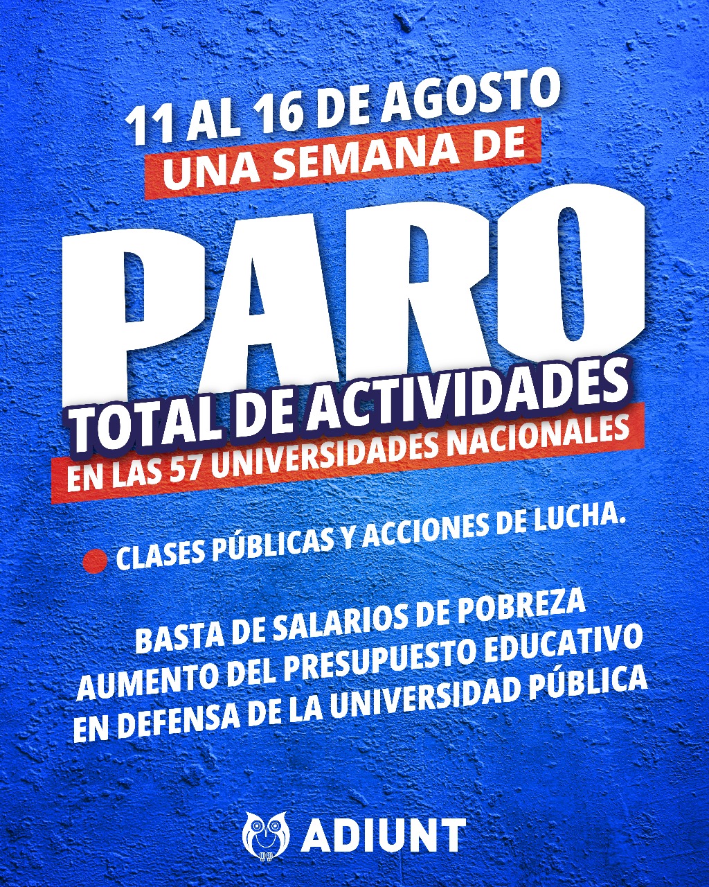 ADIUNT CONVOCA A UNA SEMANA DE PARO TOTAL EN DEFENSA DE LA UNIVERSIDAD PÚBLICA