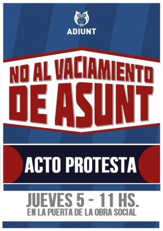 En el día de ayer, la Adiunt realizó una protesta en las puertas de la sede central de ASUNT para denunciar la …