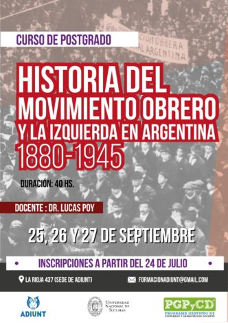 La próxima semana inicia el Curso «HISTORIA DEL MOVIMIENTO OBRERO Y LA IZQUIERDA EN ARGENTINA 1880-1945» a cargo del Dr. Lucas Poy …