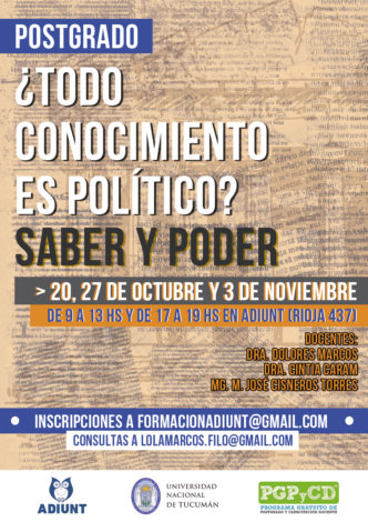 El Programa Gratuito de Postgrado y Capacitación Docente continúa con nuevos cursos. Se abrieron las inscripciones para el curso «¿Todo conocimiento es político? …