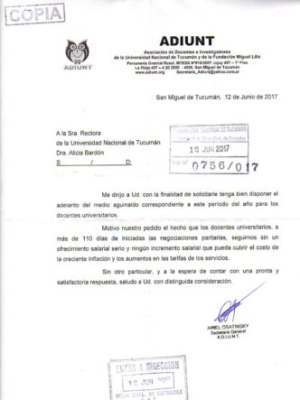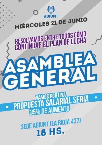 El lunes 12 de junio la Adiunt solicitó a la UNT que adelante el pago del medio aguinaldo por medio de una …