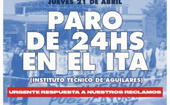 Este jueves 21 de Abril, las y los docentes del Instituto Técnico de Aguilares realizarán un #paro de 24 hs para decir …