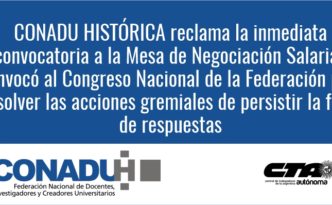 Desde la CONADUH hemos reclamado a la Secretaría de Políticas Universitarias –SPU la inmediata convocatoria a la Mesa de Negociación Salarial. Nuestra …