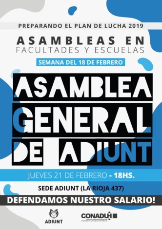 El jueves 21 se llevará a cabo la asamblea general de Adiunt para preparar el plan de lucha 2019. La misma se …