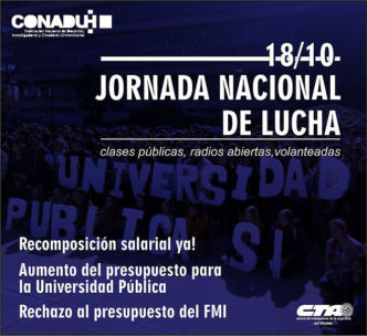 JUEVES 18 DE OCTUBRE: JORNADA NACIONAL DE LUCHA EN LAS UNIVERSIDADES NACIONALES
