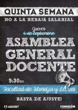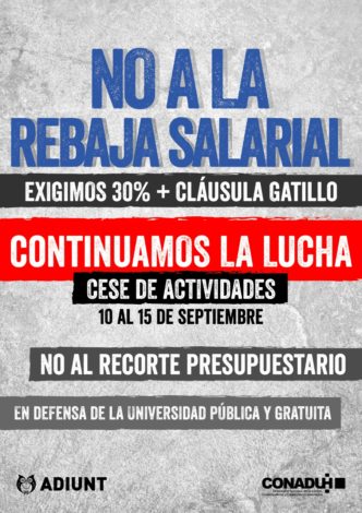Del 10 al 15 de septiembre NO A LA REBAJA SALARIAL Y EL AJUSTE DEL GOBIERNO Y LOS RECTORES. RECHAZAMOS LAS SUMAS …