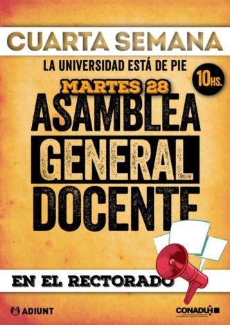 Este martes 28 vení a debatir la continuidad y profundización del plan de lucha en la asamblea general docente de Adiunt en …