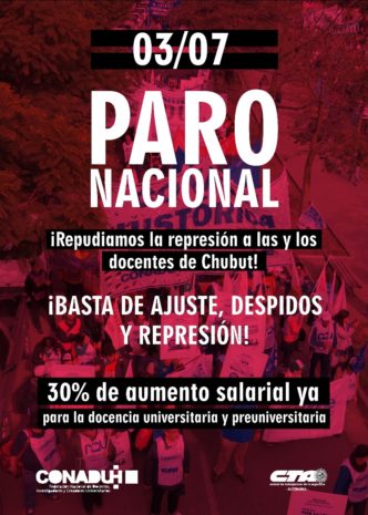 Desde la Mesa Ejecutiva de la CONADU HISTORICA convocamos a las Asociaciones de Base de la Federación a adherir al paro nacional …