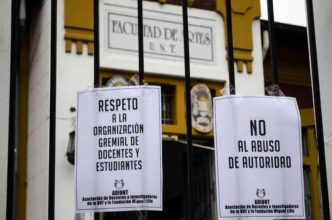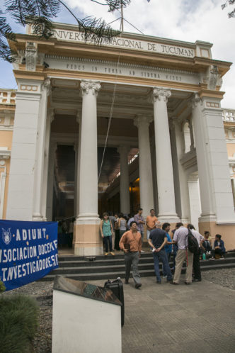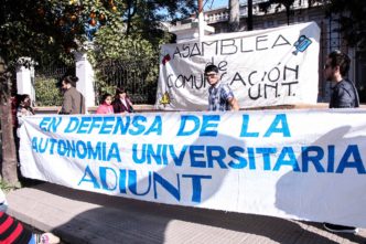El jueves pasado, en el marco de una asamblea en la facultad de Artes convocada por estudiantes y en la que participaron docentes, la vicedecana Silvia Agüero cuestionó y atacó la presencia de Jorge Figueroa, vocal de Adiunt, en dicha actividad. Ante esta situación, Adiunt convocó esta mañana a una protesta en la puerta de la Facultad junto a estudiantes para repudiar este ataque a la organización sindical, contra el abuso de poder y por la libertad gremial.