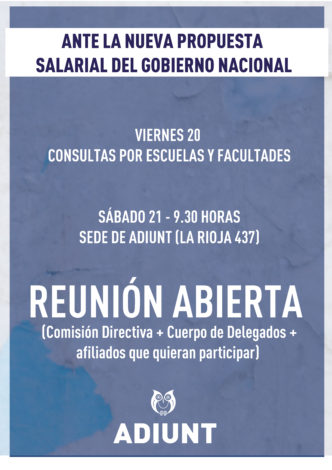 Adiunt convoca a la docencia a una asamblea general extraordinaria este martes 17 de mayo a las 18 horas en la Facultad de Artes para analizar la propuesta salarial del Gobierno Nacional y dar un mandato a los congresales.