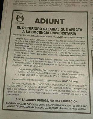 La Asamblea General de ADIUNT sesionó este Lunes 8 de junio en la Facultad de Artes con una importante y numerosa presencia docente. Los informes de las distintas facultades y escuelas expresaron el elevado acatamiento (superior al 80%) que tenía el Paro Nacional de 48 hs. convocado por la CONADU Histórica, y al que se plegaron asociaciones de otras Federaciones docentes