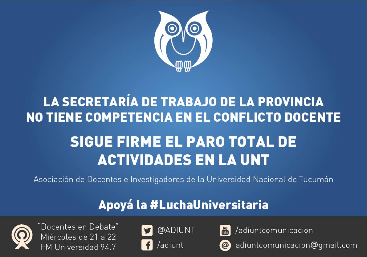 Con cerca de 500 docentes, la asamblea realizada en el anfiteatro de la facultad de Arquitectura “continuar con el paro y, en ese marco, con las negociaciones con la Universidad Nacional de Tucumán (UNT) hasta que nos otorguen un adicional de emergencia (de $2 mil) y adelanten la asamblea universitaria (a la primera quincena de octubre) con temario prioritario de carrera docente y ciudadanía para los preuniversitarios y voto inmediato a esos temas”. La moción se impuso por 318 votos contra 111 que proponía flexibilizar las medidas.