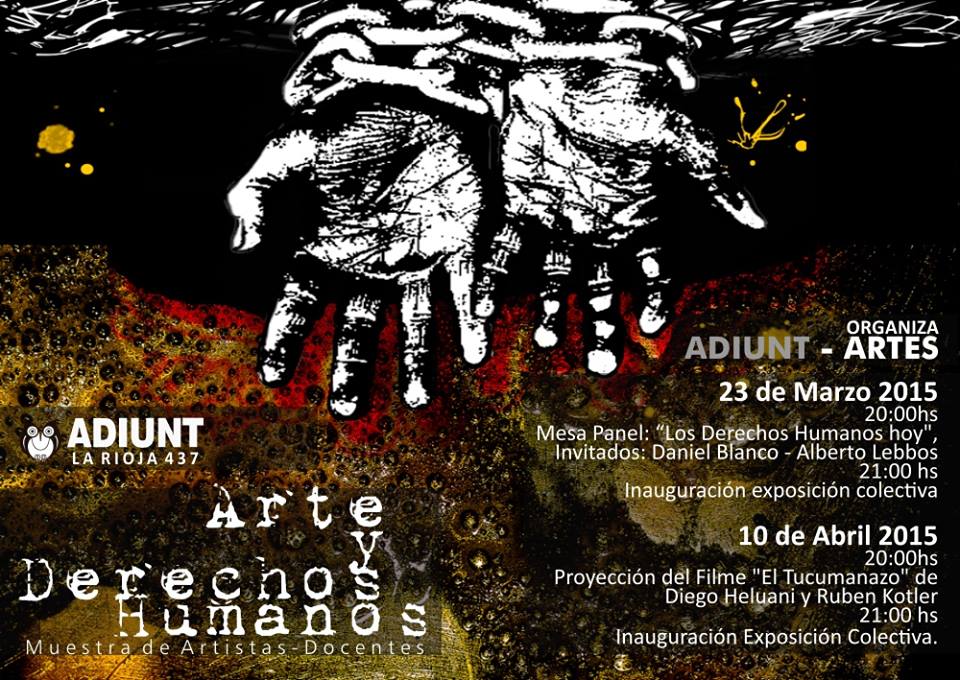 La seccional de la Facultad de Artes, ADIUNT- Artes conmemora el 24 de Marzo con una actividad político-artística que se desarrollará este lunes 23 de marzo desde las 20 horas en la Casa Adiunt. Habrá una mesa panel y luego será la inauguración de la exposición.